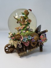 Vintage Snow Globe Spring Garden Wheelbarrow Hummingbird Floral Scene Music Box