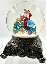 Vintage Waterless Snow Globe Music Box With Santa And Reindeer