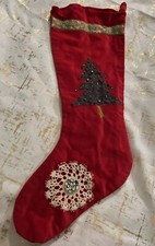 Antique Handmade Felt & Sequin Beaded Christmas Stocking Large 15”