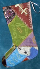 1888! GORGEOUS ANTIQUE VINTAGE CRAZY QUILT CHRISTMAS STOCKING CUTTER QUILT 24-21