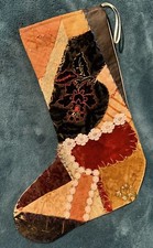 STUNNING ANTIQUE VINTAGE CRAZY QUILT CHRISTMAS STOCKING! CUTTER QUILT 25-12