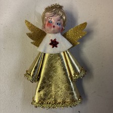 ANTIQUE CHRISTMAS COMPOSITION FOIL ANGEL 7 INCH TREE TOPPER FOIL GOLD DRESDEN