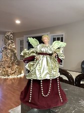Victorian Christmas Angel Tree Topper Burgundy And Gold Beads 16” Tall