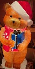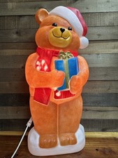 Vintage Empire Teddy Bear With Present Blow Mold Lighted Christmas Decor SHARP!!
