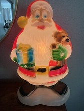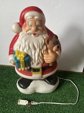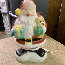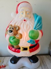Vintage Plastic Lighted 18" Blow Mold Santa Claus Christmas Gift Teddy Bear