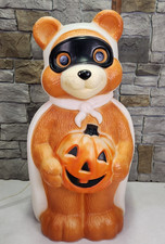 VTG HALLOWEEN BEAR Blow Mold 24” Pumpkin Masked Bandit Lighted Yard Decor Teddy