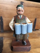 Antique Anri Hand Carved Wood Man Gentlemen Pair Bar Corkscrew Bottle Opener