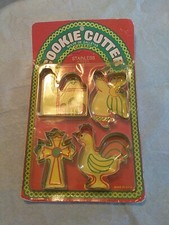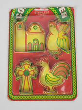 NOS Stainless Steel Cookie Cutters Vintage Set 4 Cross Mission Angel Rooster