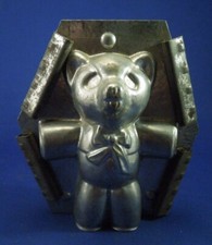 Vintage Teddy Bear Mold Metal Candy Chocolate Mold with Four Clips Toy Bear