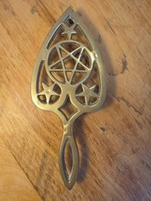 Antique Brass Trivet Pentagram Stars Heart Shape 3 Feet Wiccan Occult Witch