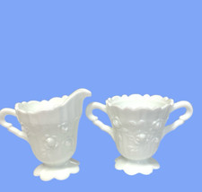 Fenton 2 Piece Milk Glass Daisy Button Angel Wings Creamer & Open Sugar Bowl USA