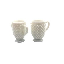 Fenton Art Glass - Milk Glass Hobnail - Cream & Suger - 3.5"