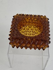 Vintage Fenton Art Glass Amber Pointed Hobnail Square Open Salt Cellar /Tealight