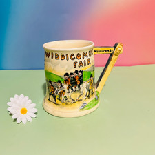 Antique English Transferware Music Box Tankard Mug Widdecombe Fair Crown Devon