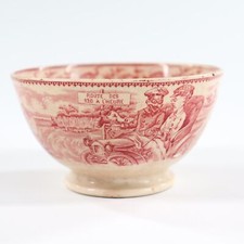 Antique Transferware Bowl AUTO by Boch Freres Kermis Red Political Caricature