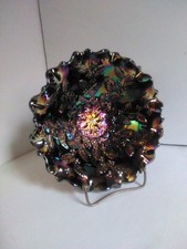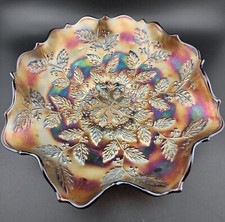 Fenton Heart & Vine Antique Carnival Glass 3/1 Crimped Edge Bowl Purple Violet