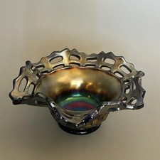 FENTON ART GLASS Vintage Silver Crest Bowl with Ruffle Top