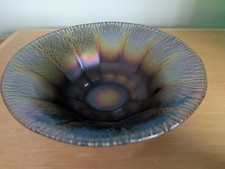 Antique Fenton Stretch Carnival Glass Bowl Stippled Rays Iridescent Blue Purple
