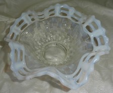 FENTON c. 1911 BASKETWEAVE OPEN EDGE Art Glass WHITE OPAL 3 Row Bowl 6-5/8"