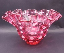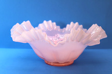 Vtg 1940s MC Fenton Ruffled Bowl Rose/Pink Overlay 10" Mint Cond.