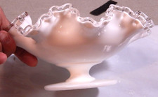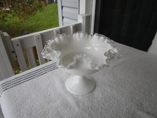 Fenton Art Glass Silver Crest Milk Glass Ruffled Pedestal Compote Candy Dish