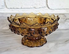 FENTON, AMBER GLASS COMPOTE, CANDY BOWL OR DISH - ART GLASS, VINTAGE, MCM