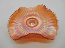 Fenton Orange Tree 4 Foot Marigold Iridescent Carnival Glass Ruffled Bowl 10"