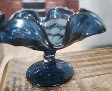 FENTON RUFFLED BLUE PEDESTAL FOOTED THUMBPRINT CANDY DISH BOWL Art Glass 60's
