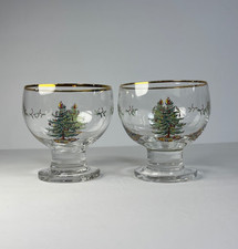 Set of 2 ~ SPODE Christmas Tree Glassware Ice Cream 4" Pudding Bowl Green & Gold