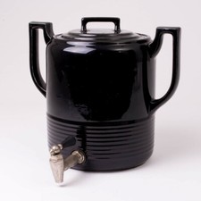 Rare Vintage Hall China Black Ceramic Beverage Dispenser Urn Double Handle 10"