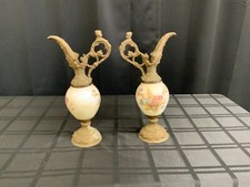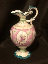 Antique Hand Painted Porcelain Metal Base Jug Ewer Urn