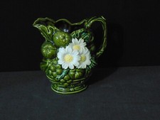 Vintage Tilso Japan Daisy/Fruit Ceramic Green Pitcher/Urn