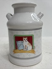 Vtg Vandor Double Handle Farmhouse Milk Jug Urn w Cat Design by Pelzman 5”x7”