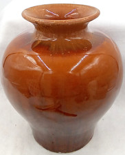 Brown Urn Jug Jar Vase Crock Stoneware Pottery Primitive Rustic Glossy Vintage