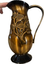 Small Vintage Bronze Urn/ Pitcher/creamer Floral Relief 8” Made in India Heavy