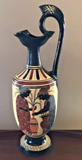 Vtg Greece Made Tall Pitcher Jug Amphora Pottery, Figures w/ Urns 14-3/4" READ