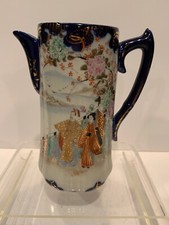 Cobalt Nippon Style Floral Design Urn/Pitcher/ Vase with Gold Trim and Handle.