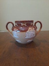 Antique Doulton Lambeth Salt Glazed Stoneware Pottery Handled Urn Dogs EUC