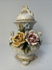 Vintage Capodimonte Handpainted Ceramic Urn Vase Pot w/Lid & Handle, 20" Tall