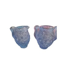 2 LE SMITH DAISY BUTTON BLUE FROST TOOTHPICK HOLDER URN PITCHER JUG UV Glowing