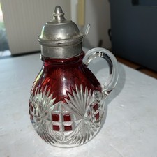 Antique ADAMS & CO EAPG GLASS Creamer 'CRYSTAL WEDDING' W RUBY RED STAIN c1919