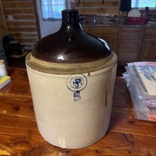 Antique Stoneware Crock 5 Gallon Jug Two Toned Brown & Cream With Handle