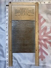 Antique Tin & Wood Washboard Kids Toy Little Darling