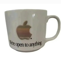 Macintosh APPLE VINTAGE rare "We're Open to Anything" coffee mug **Flawed Image