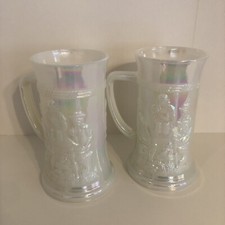 Vintage Set 2 Fenton Federal Iridescent Carnival Glass Tavern Scene Stein Mug