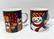 Vintage Christmas Mugs Set of 2 Toy Theme Bears Penguins 1990s Holiday Cups