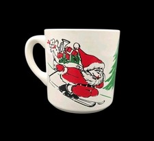 Vintage Christmas Santa Claus Skiing Toy Sack Ceramic Coffee Mug USA Cup Skis