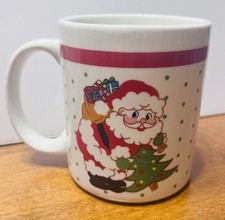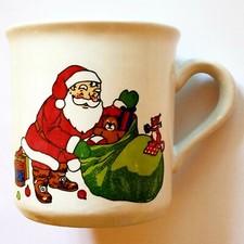 Santa With Toy Bag Coffee Cup Vintage Unbranded White Christmas Free Shipping