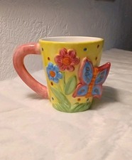 Vintage Mug Coffee•Butterfly & Flowers•TB Toy Trading Co•Yellow & Pink•3D