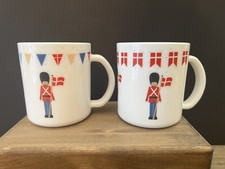 Two Vintage Milkglass Toy Soldier Mugs - London Guard - Bunting